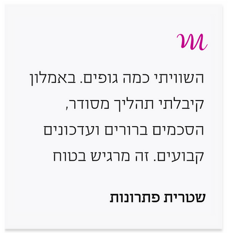 השוויתי כמה גופים. באמלון קיבלתי תהליך מסודר, הסכמים ברורים ועדכונים קבועים. זה מרגיש בטוח